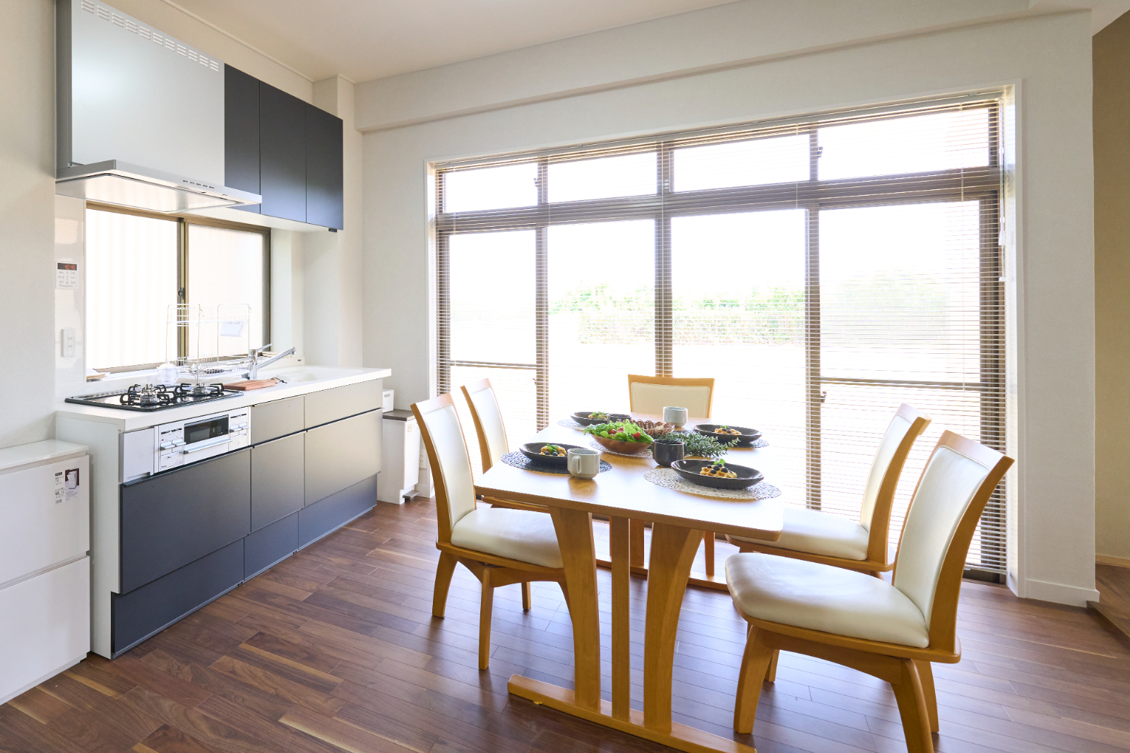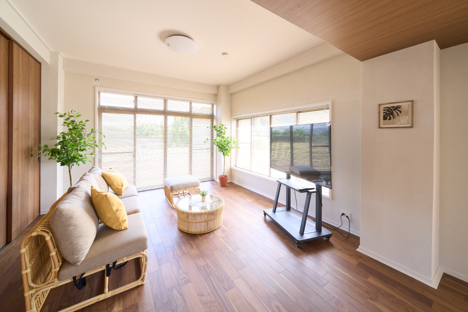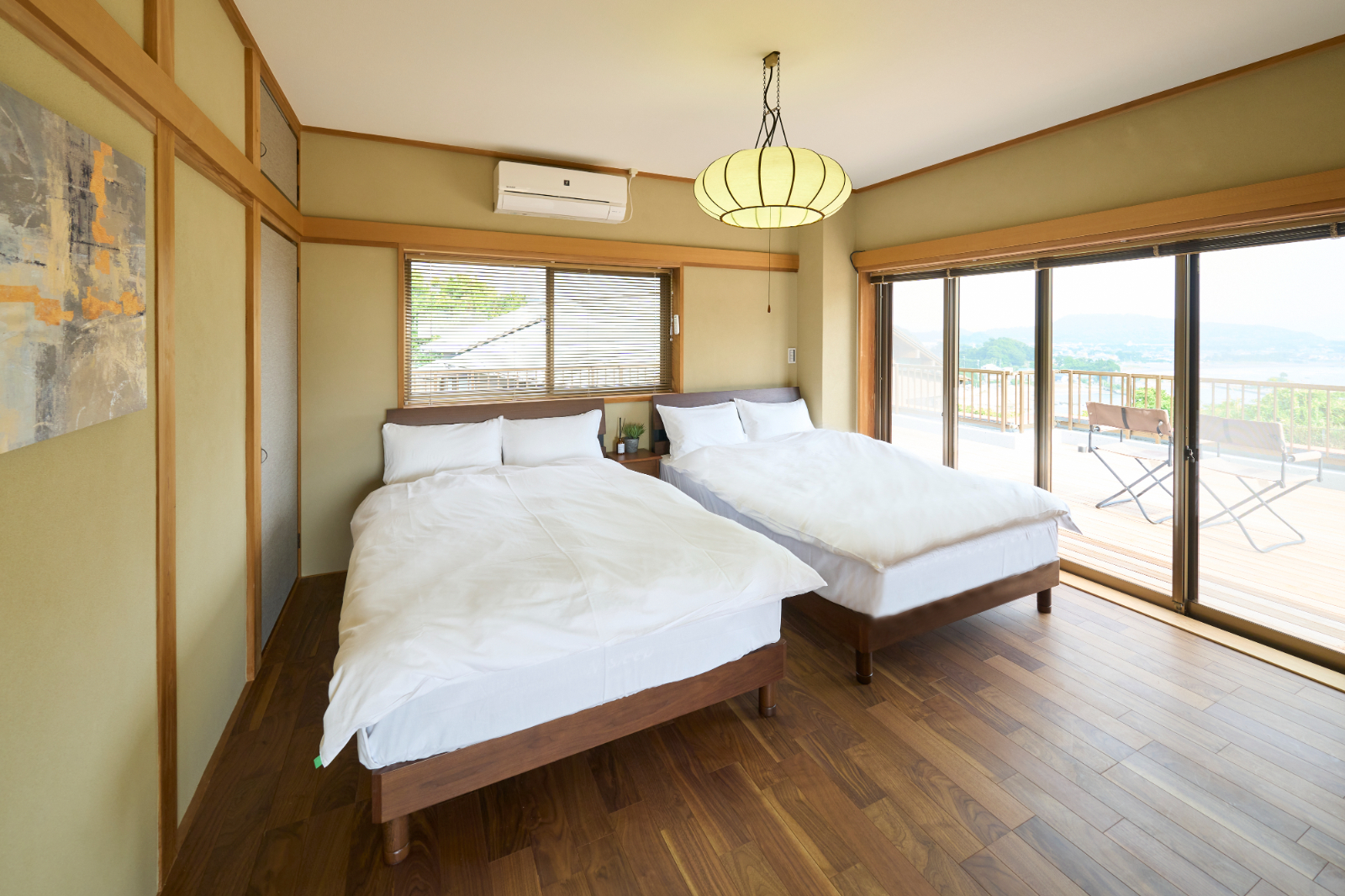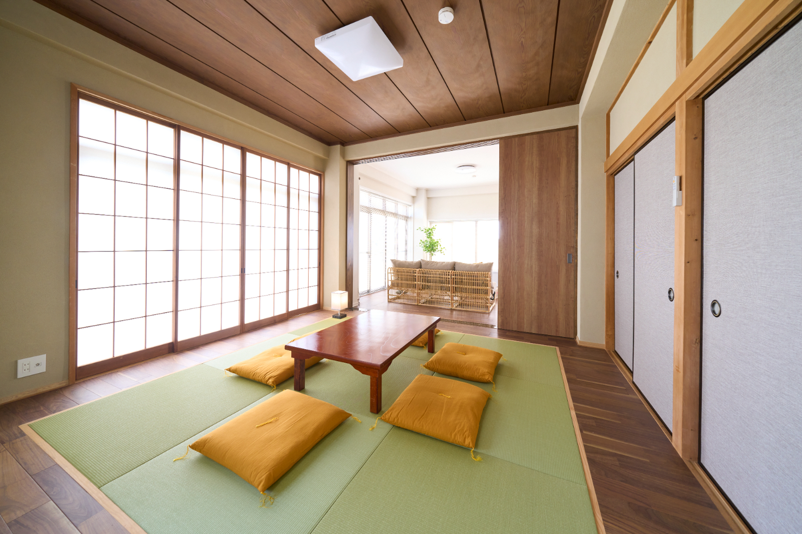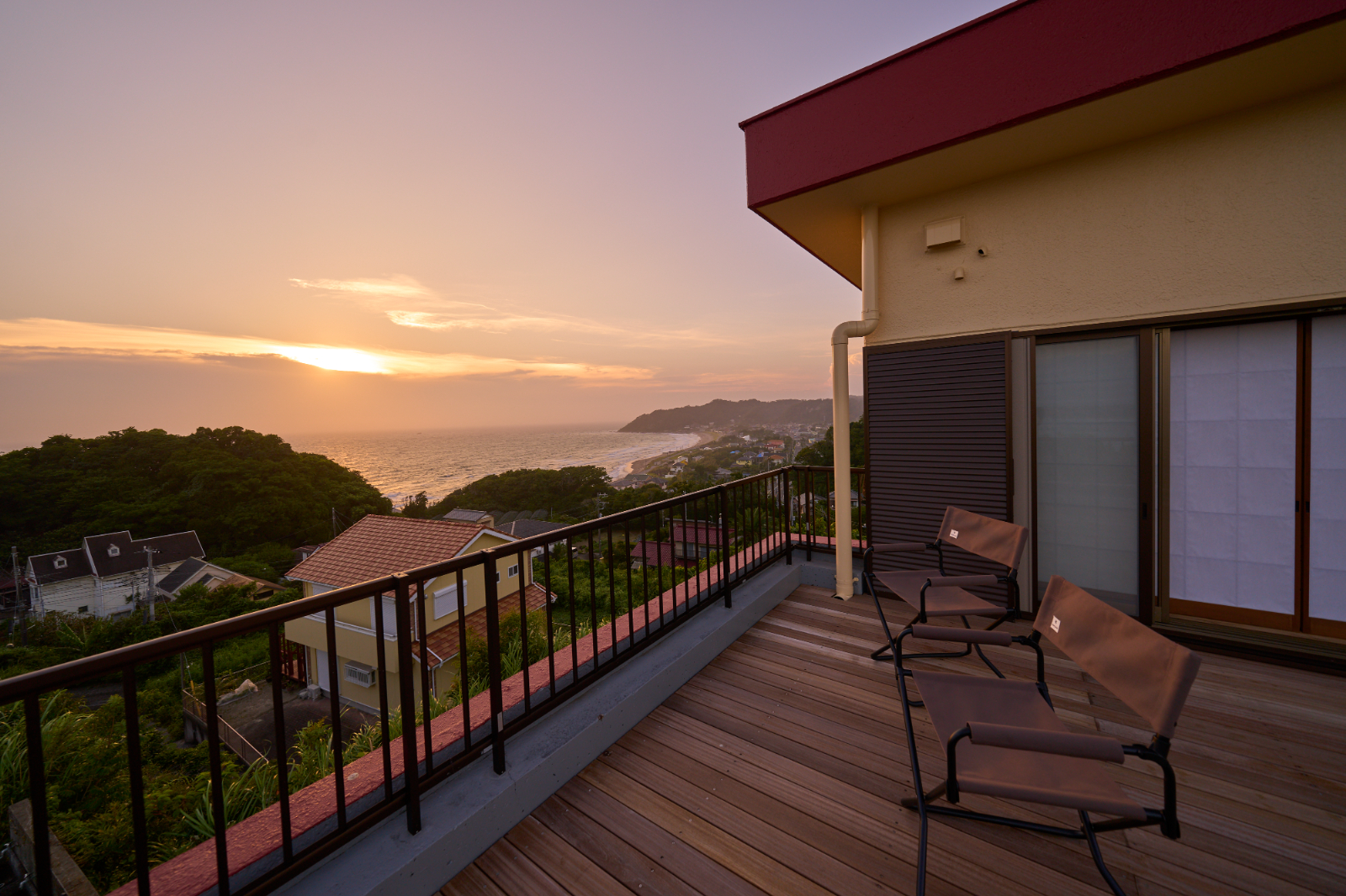 南房総の貸別荘を、海の眺望を最大化する全面リノベーション。床の間のある和室と洋室、ダイニングを隔てていた壁や垂れ壁を撤去し、視線が海へまっすぐ抜けるワンフロアLDKへ。玄関は周囲の壁を取り払い、同位置の洗面とともに明るい迎えに刷新。浴室は素材と配色を見直して清潔感とメンテ性を向上。動線は回遊性を高め、荷解き・物干し・掃除が一筆書きで完結します。段差と陰影を整えることで滞在時のストレスを軽減し、家具レイアウトの自由度も拡張。ダイニングと和室の境界を解消して居場所の連続性を確保し、“借景を暮らしの中心に”を合言葉に開放感とくつろぎを深めた改修です。