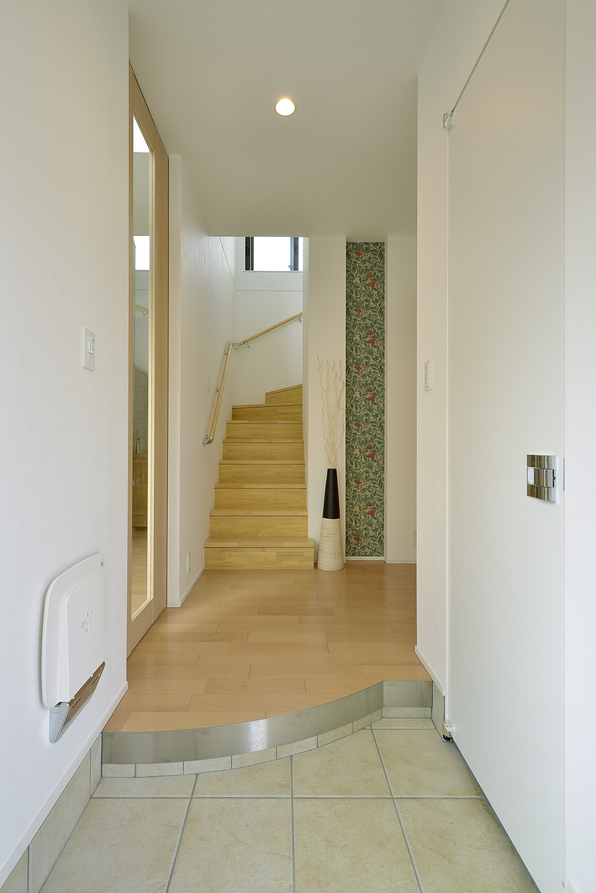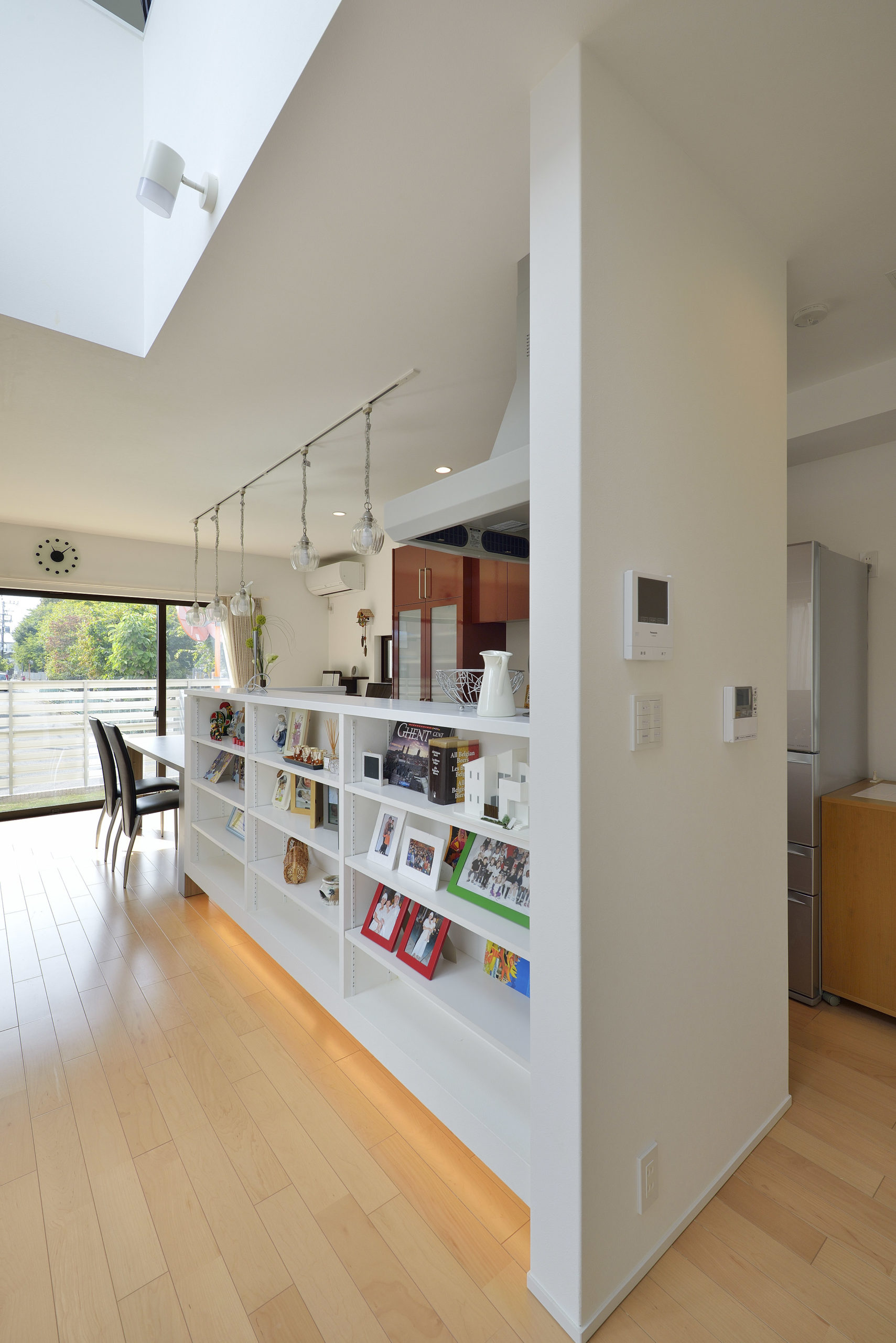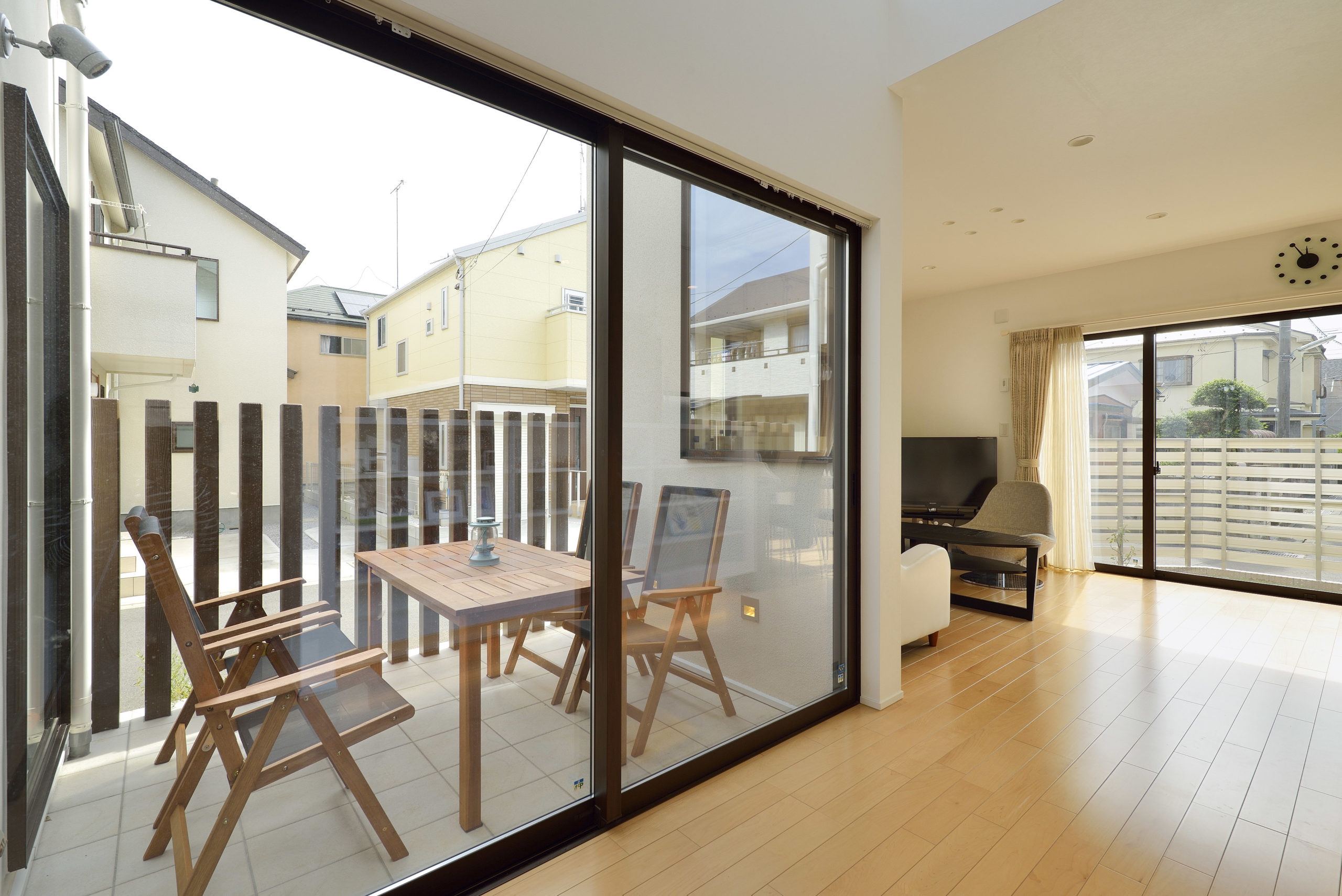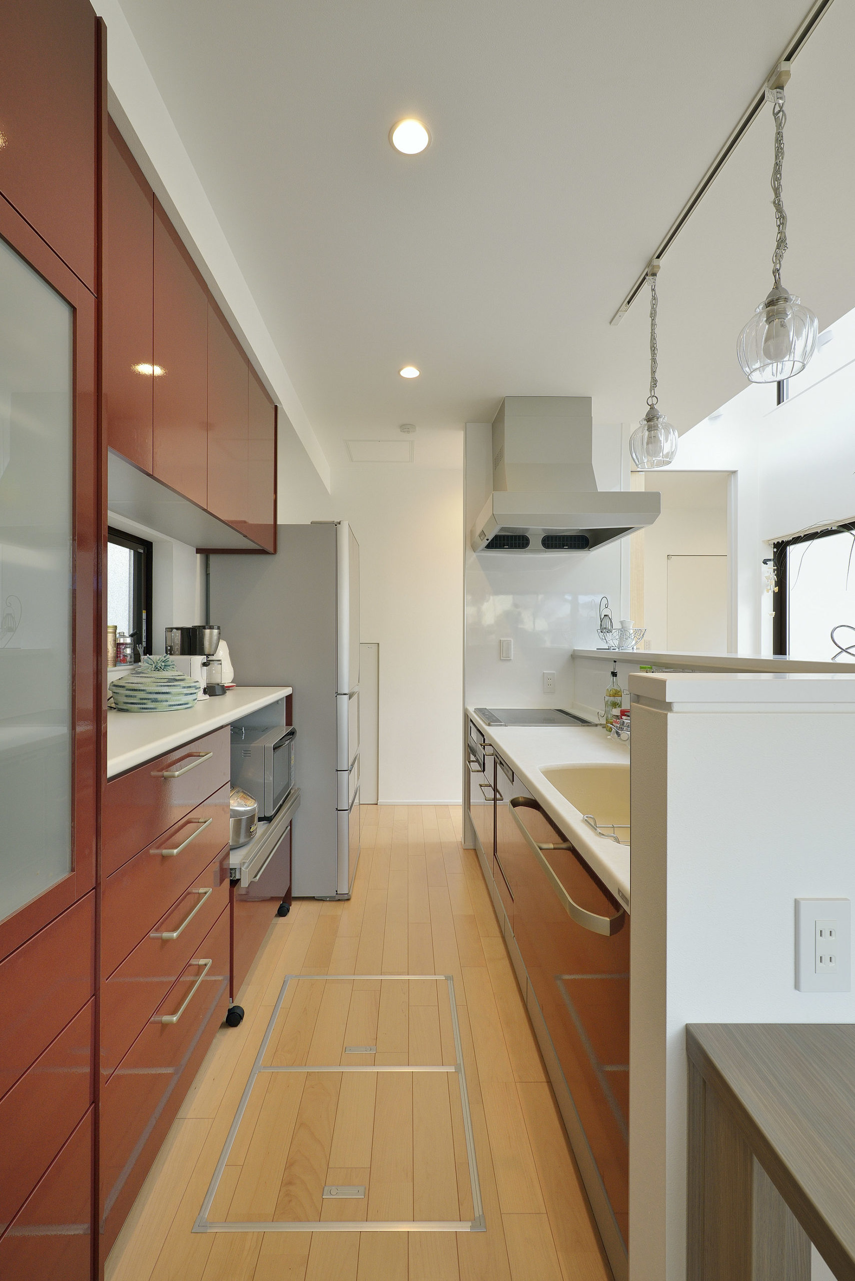 玄関扉を開けてまず目に入る中庭は、リビングダイニング、キッチンのどこにいても見えるように、空間の広がりを感じるように間取りを工夫しています。