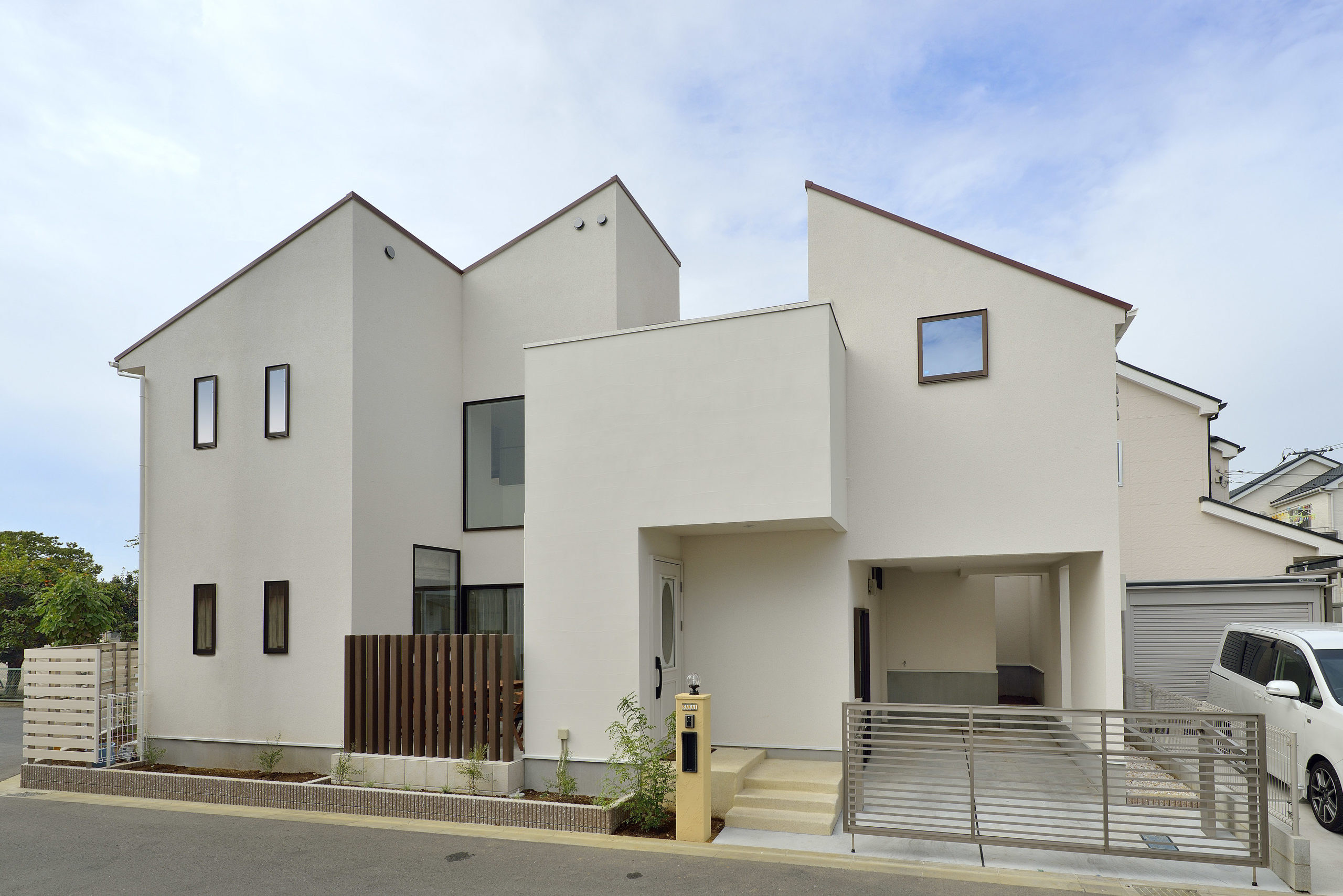 南と西に広めの道路がある立地を生かして、リビングダイニングキッチン、そして中庭まで光で満たす、開放感に溢れたおうちを設計施工しました。