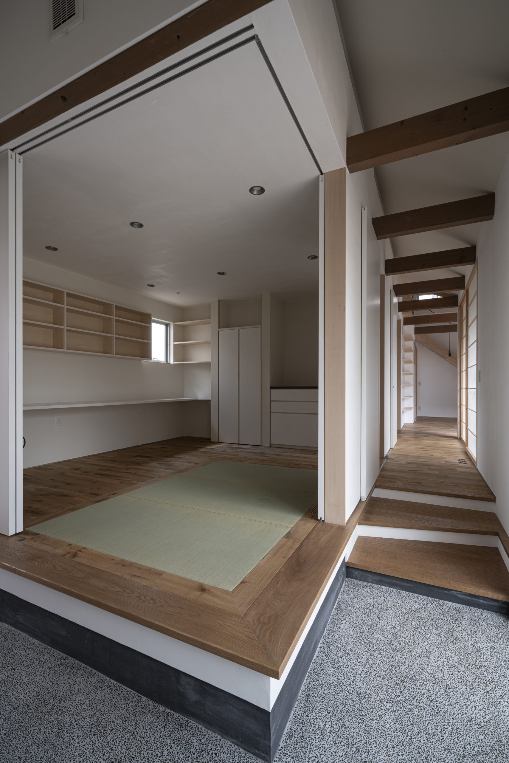 建築家の設計意図を損なわず、寸法・見付・ラインを現場で精密に統一。開口の高さやスイッチ位置、巾木や建具の取り合いまで整え、光の通り道と動線の抜けを丁寧に確保します。素材は質感の揃う仕上げを選定し、断熱・耐震などの性能値も確実に担保。配線・給排気・設備ルートの衝突は施工段階で先回りして解決。モックアップやサンプルで仕上がりを逐次確認し、監理と緊密に連携しながら納期とコストの整合を保ち、生活の所作になじむ“静かな美しさ”へ。外部は周辺環境に配慮しつつ耐久性とメンテ性を検討。設計と施工の呼吸を合わせ、発想を確かな実物へ結晶させたコラボ住宅です。静かに長く寄り添います。