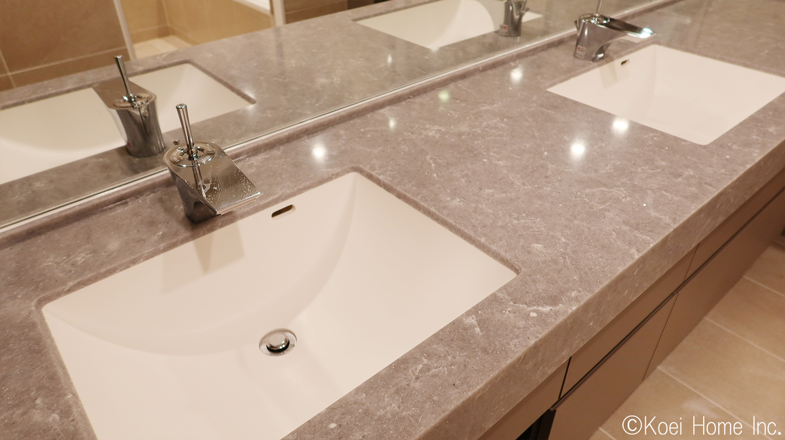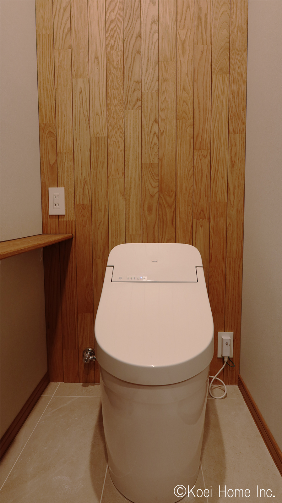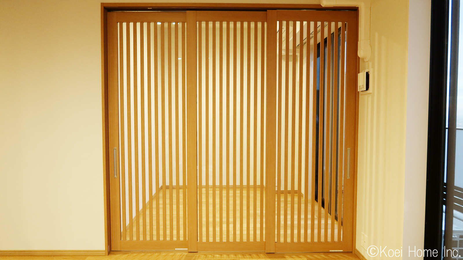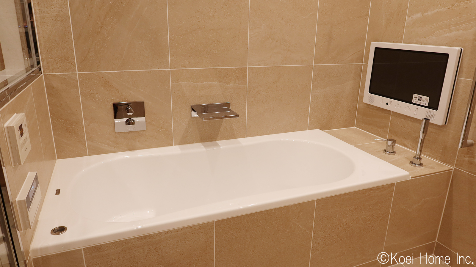 約70㎡のマンションを、海外で暮らすような“ホテルライク”に全面リノベ。もとの3LDKは洋室の壁を取り払い、約17畳の一体LDKへ。浴室はニッコー〈バンクチュール〉のオーダーシステムで約2倍に拡張し、シャワーブースを2基備えた特別なバス空間に更新。キッチンは既存を活かし扉色を貼替、背面カップボードに海外製洗濯乾燥機を組込み、静音家電で家事のストレスを軽減。突き板パネルや木目天井で奥行きを強調し、3LDK→1LDK+Sへ間取り最適化。玄関と廊下は遮りを減らして明るく、洋室にいても家族のつながりを感じられる構成に。突き板は背面から天井へ連続させ、空間をより広く高く見せています。