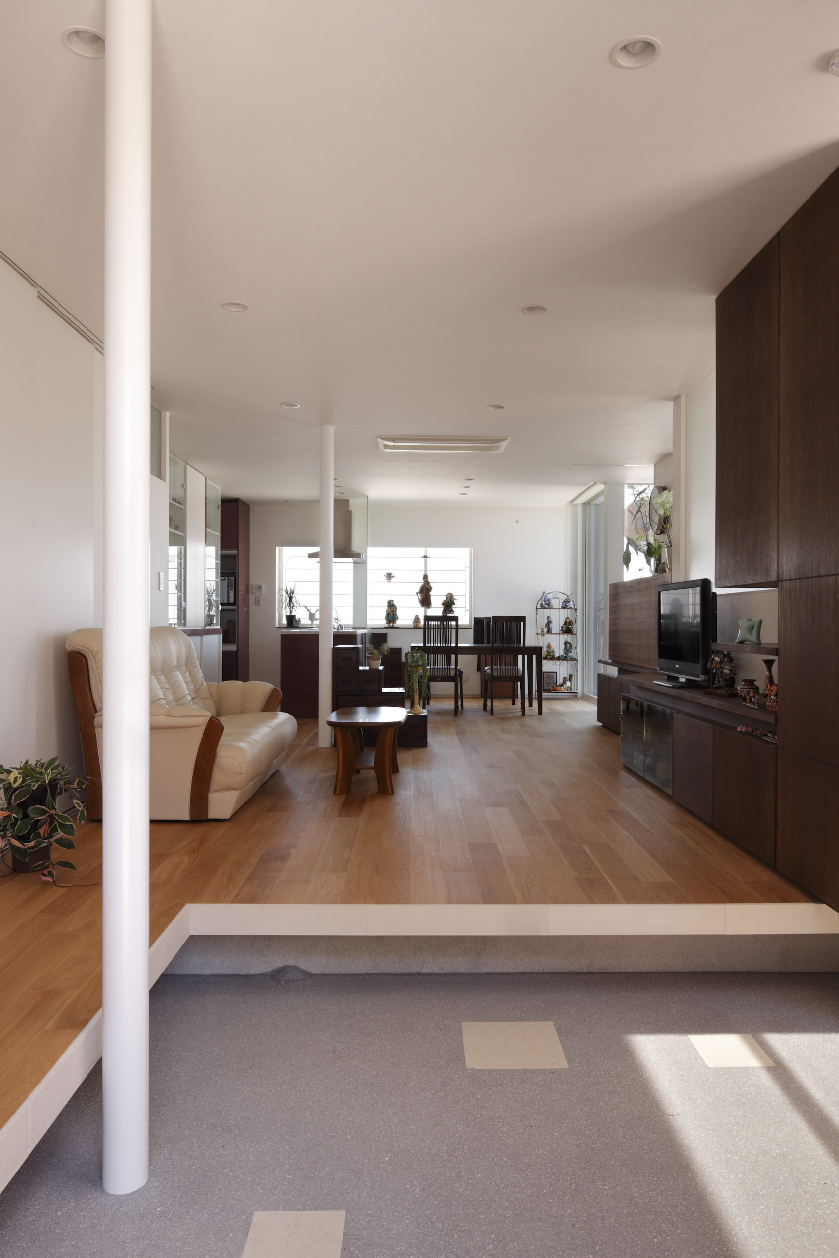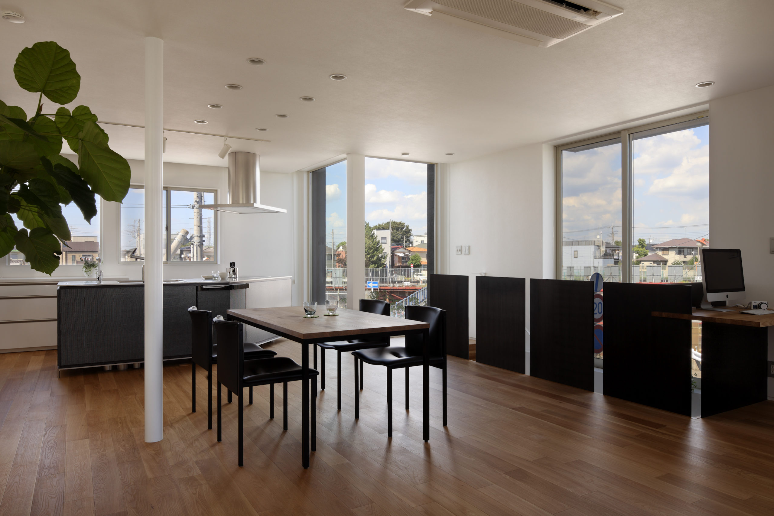 設計の構想を現場で解像し、開口寸法や見付、ラインの通し方まで公差を管理。配線・給排気・設備ルートの干渉は施工前に先回りで解消します。仕上げは質感の揃う材料を選定し、断熱・気密・耐震の性能値を確実に担保。モックアップとサンプルで仕上がりを逐次確認し、監理と連携して精度を高める。家具配置や照明回路、スイッチ高さまで“使い心地”基準で最適化。光の入り方と動線の抜けを美しく整え、窓辺の陰影と床の質感が穏やかに重なる。外部は周辺の視線や風向に配慮し、軒や庇で四季の光を調律。耐久性とメンテ性のバランスも検討。静けさと端正さが日常に積み重なる、鶴崎工務店の現場力が息づく一邸。暮らすほどに、品よく、心地よく。