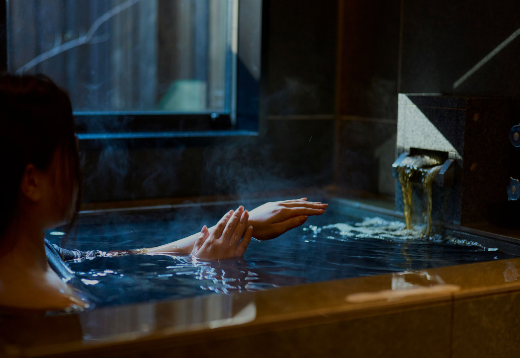各棟へ黒褐色の天然温泉を引き込み、浴槽まわりは温熱環境と防水ディテールを優先。窓は目線高さと景の抜けを吟味し、外部と緩やかにつながる“私的スパ”の体験を形成します。換気・断熱・防湿の層構成を適切に重ね、湯気や音の逃げを制御。滞在の終わりに体温を整える建築的な装置です。