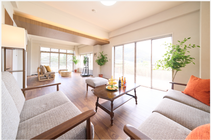 海を臨む貸別荘リノベーション。眺望が“主役”の一体空間へ。